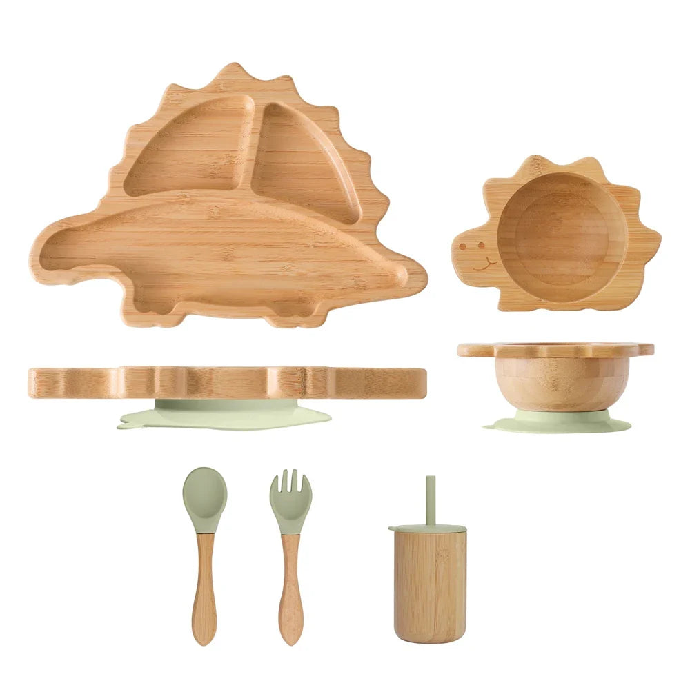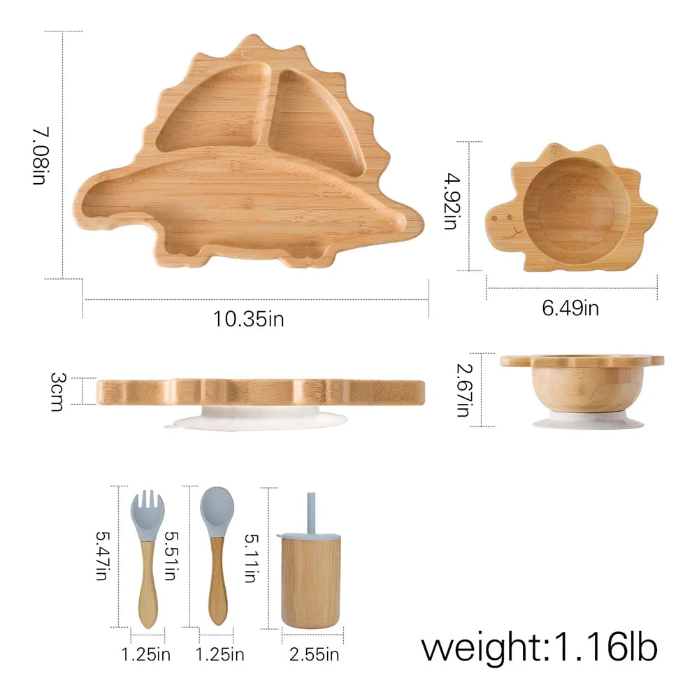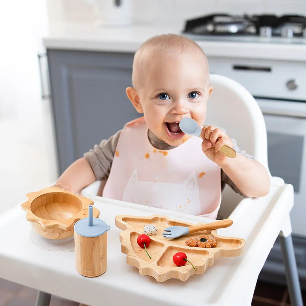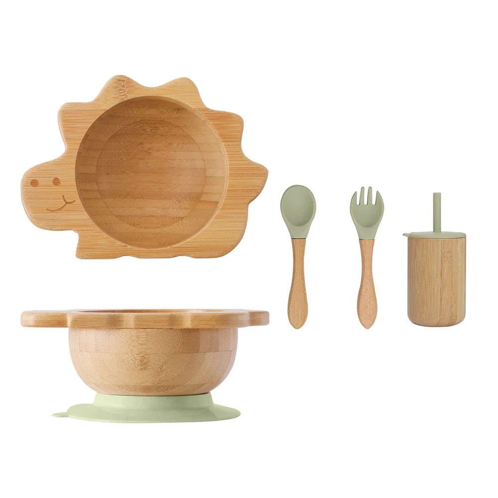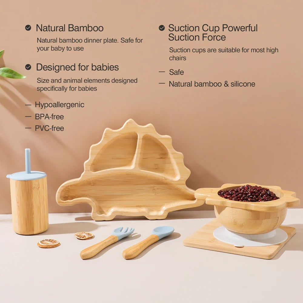 Introducing our Bamboo Baby Feeding Tableware Set - the perfect mealtime companion for your little one. Crafted from natural bamboo, this set is not only eco-friendly but also durable and safe for your baby to use. The set includes a silicone suction cup for added stability, making meal times more enjoyable and less messy.