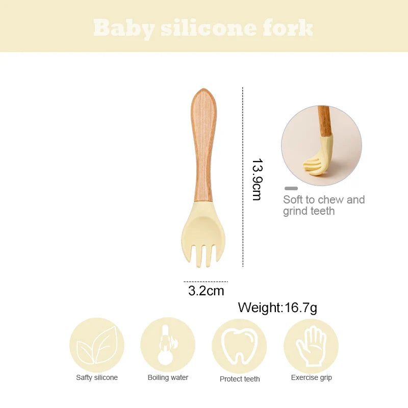 Introducing our 1PCS Baby Bamboo Fork and Silicone Wooden Baby Feeding Spoon, specially designed for your little ones. Made from advanced silicone material, these feeding accessories are not only safe and reliable but also BPA-free, ensuring the best for your baby.