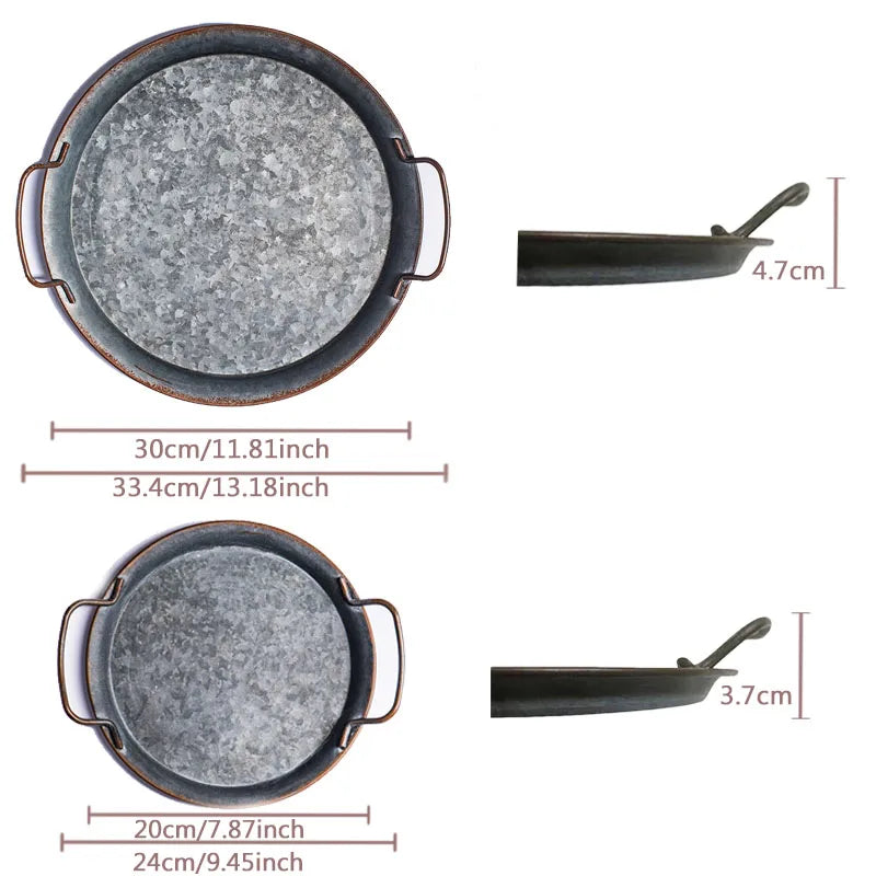 Axya Retro Metal Dinner Plates, Vintage Iron Tray Set, Photography Props