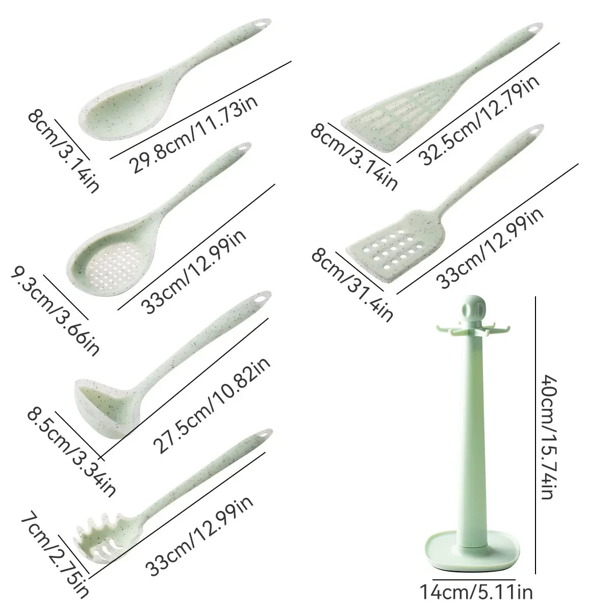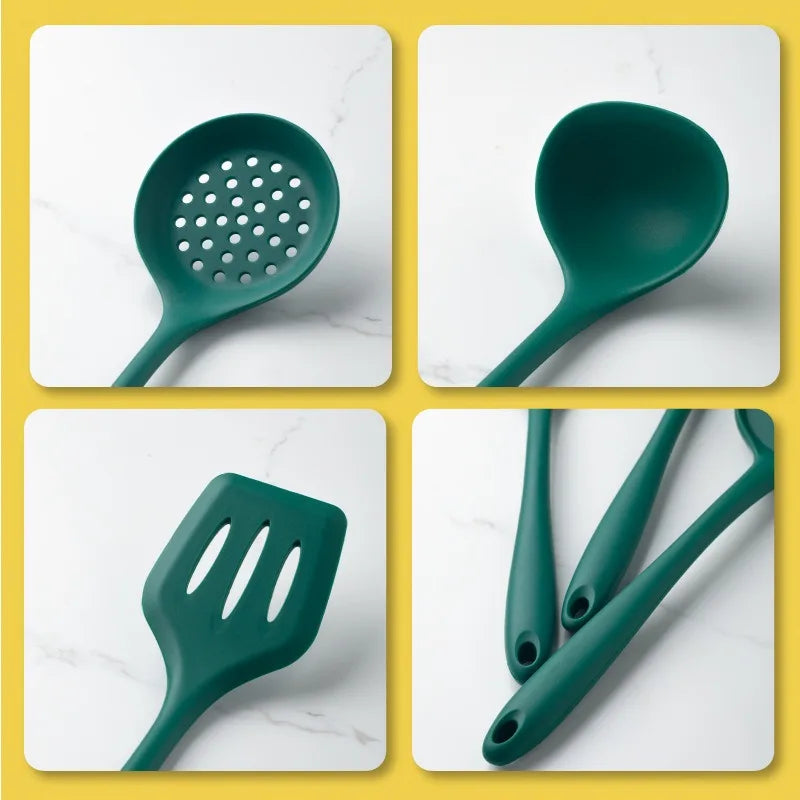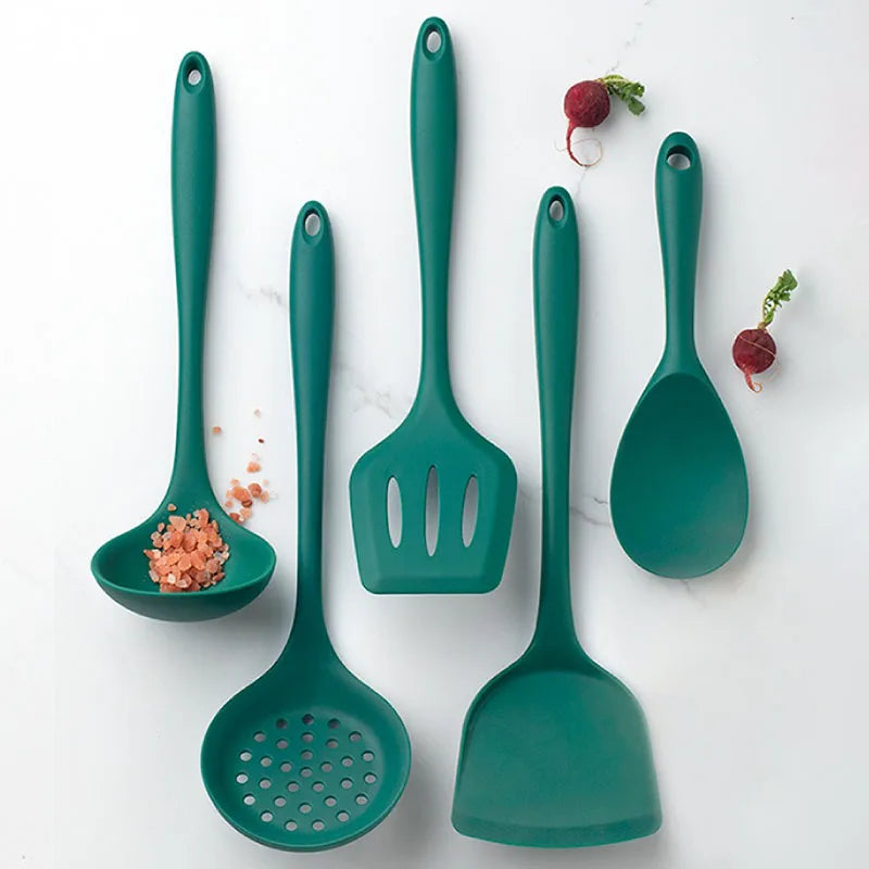 Axyaa Silicone Kitchen Utensil Set - Green Non-stick Cookware Tools