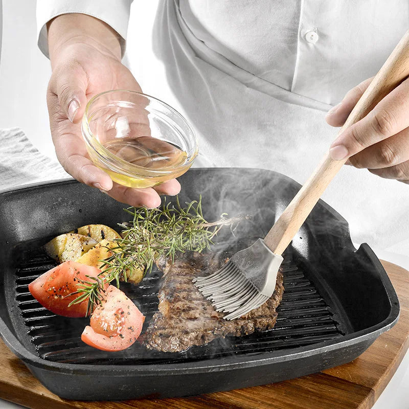 With a certification of CE / EU, CIQ, EEC, LFGB, and SGS, you can trust in the quality and safety of our kitchen utensil set. The set includes 5 essential pieces, including a spatula, spoon, tongs, whisk, and brush, to cater to all your cooking needs.