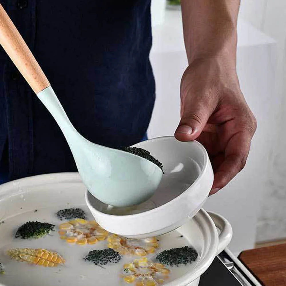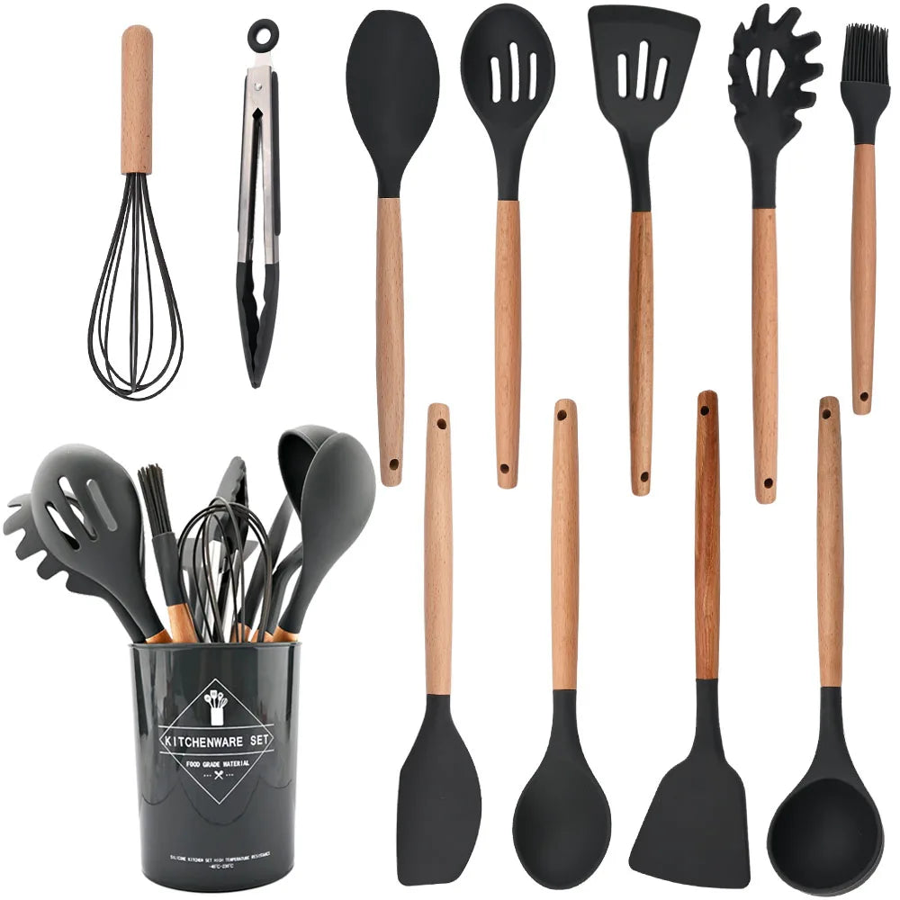 Elevate your cooking game with our Axyaa Silicone Kitchen Utensil Set. Whether you're sautéing, flipping, stirring, or basting, our cooking tool set has got you covered. Say goodbye to scratched pans and damaged cookware, and hello to a seamless cooking experience.
