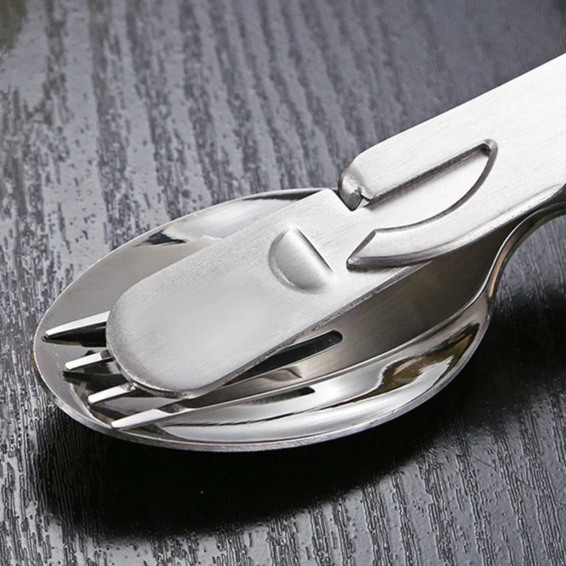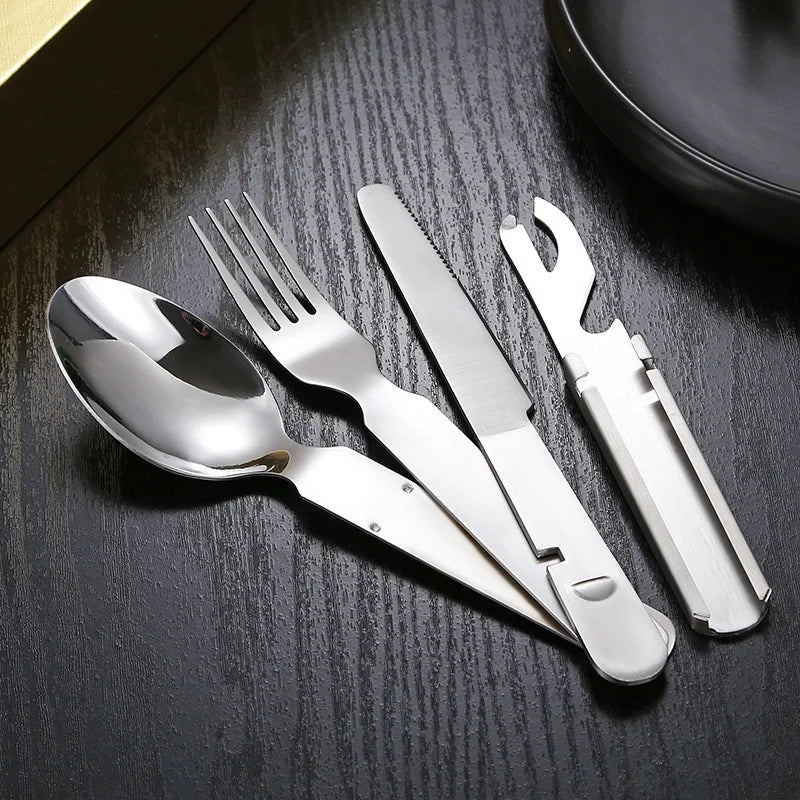 Axyaa 4-in-1 Stainless Steel Picnic Cutlery Set - Dining Knife Fork Spoon Bottle Opener