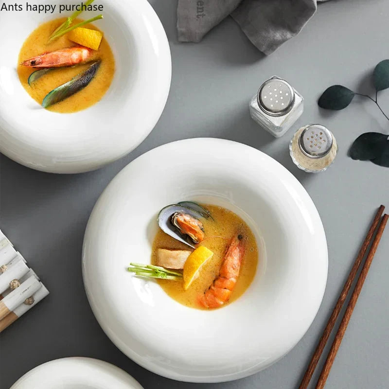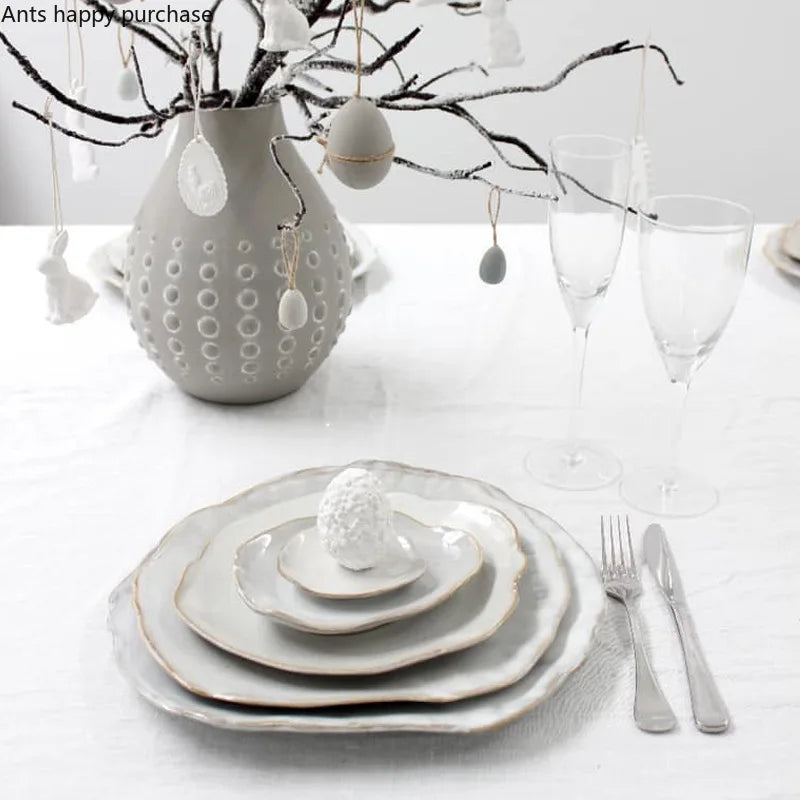 Axya Ceramic Tableware Collection: Oyster Plate, Dinner Plate, Bowl Set, Tray, and More