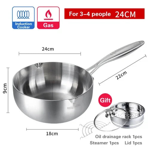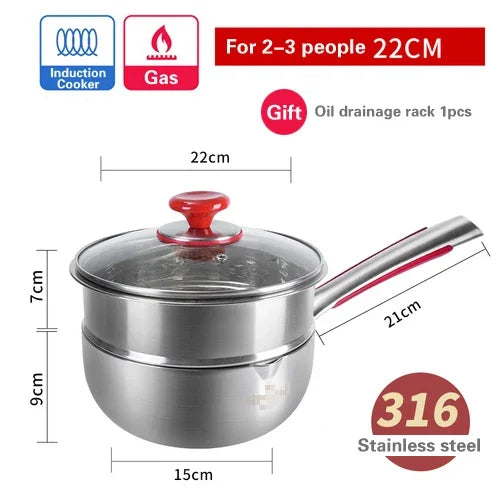 Introducing our top-quality 304 stainless steel steamer Congee Noodle Soup Pot, specially designed for cooking enthusiasts who appreciate performance and durability in the kitchen. This Small boiling pot is a versatile addition to your cookware collection, ideal for preparing a variety of dishes with ease.