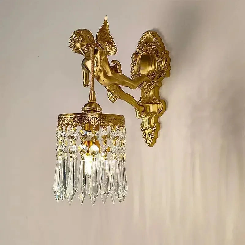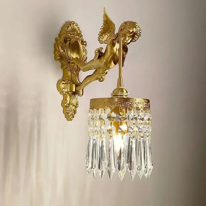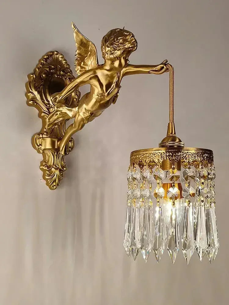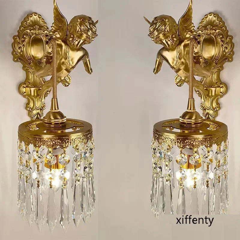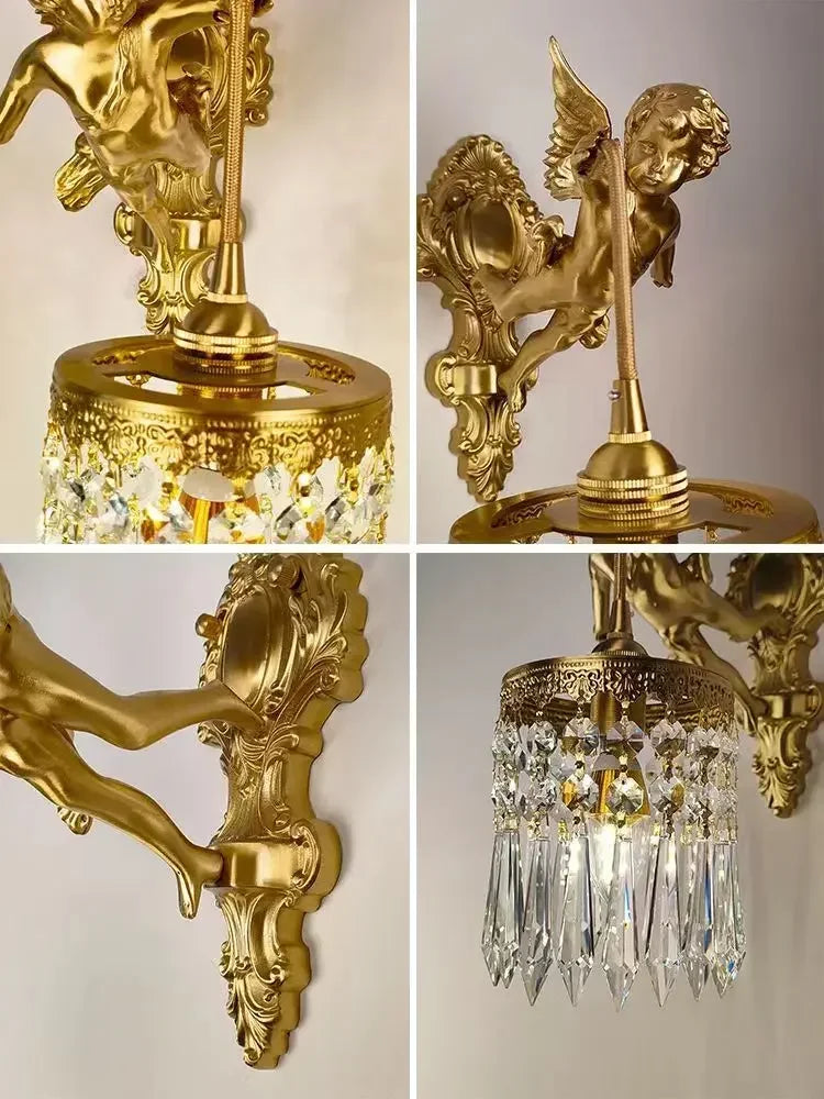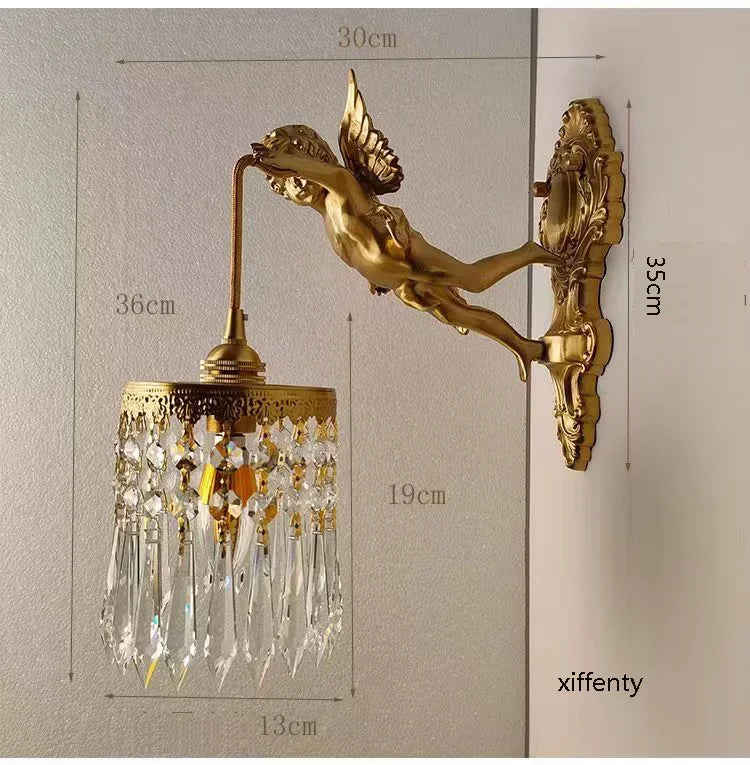 Introducing the Luxurious European Crystal Brass Wall Lamp by Axya - LED Angel Wings Wall Lights, a stunning addition to any modern space. This exquisite wall lamp exudes elegance and sophistication, elevating the ambiance of your room with its breathtaking design.