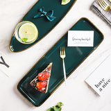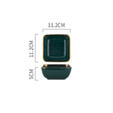Introducing our Square Green Ceramic Dinner Plate Gold Porcelain Dessert Bowl Set by Axya, crafted with exquisite attention to detail for a touch of elegance to elevate your dining experience.