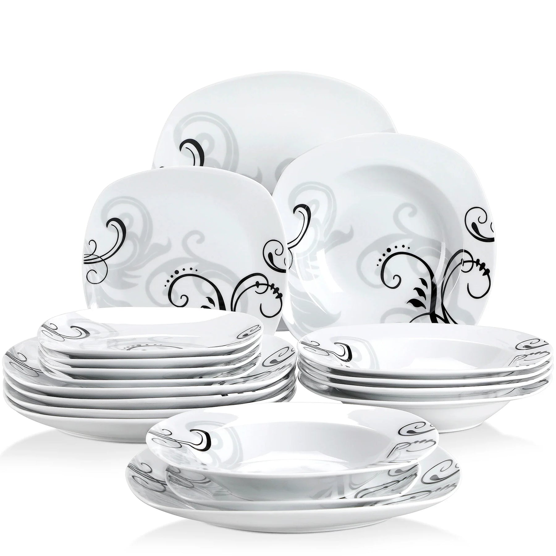 Introducing our exquisite Axya™ Decal Pattern 18-Piece Porcelain Dinnerware Set, a perfect addition to elevate your dining experience. Crafted with the finest quality ceramic, this kitchen plate set is designed to impress and add a touch of elegance to your table setting.