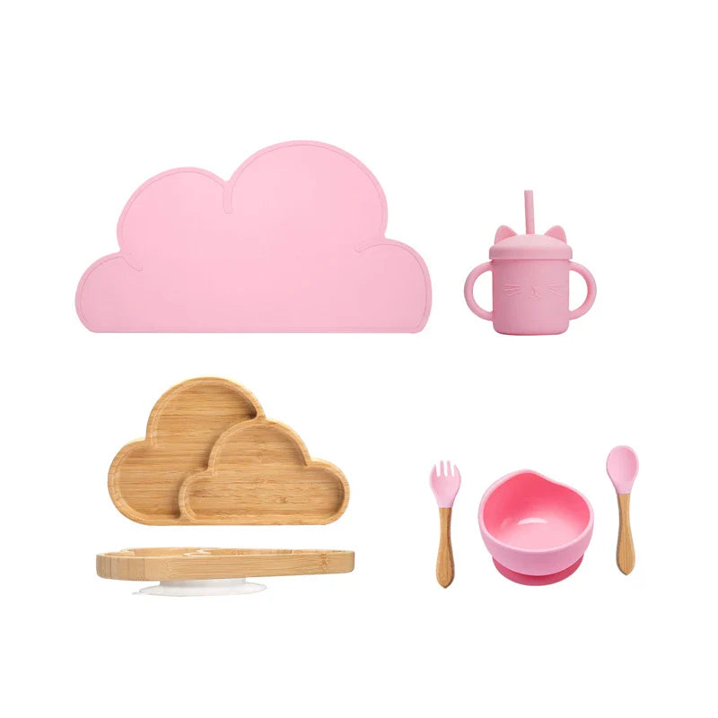 Introducing the Axya Cloud Tableware Six-Piece Set, a delightful addition to your baby's feeding essentials. Crafted from high-quality food-grade silicone, this set is designed to make mealtime a breeze for both you and your little one.