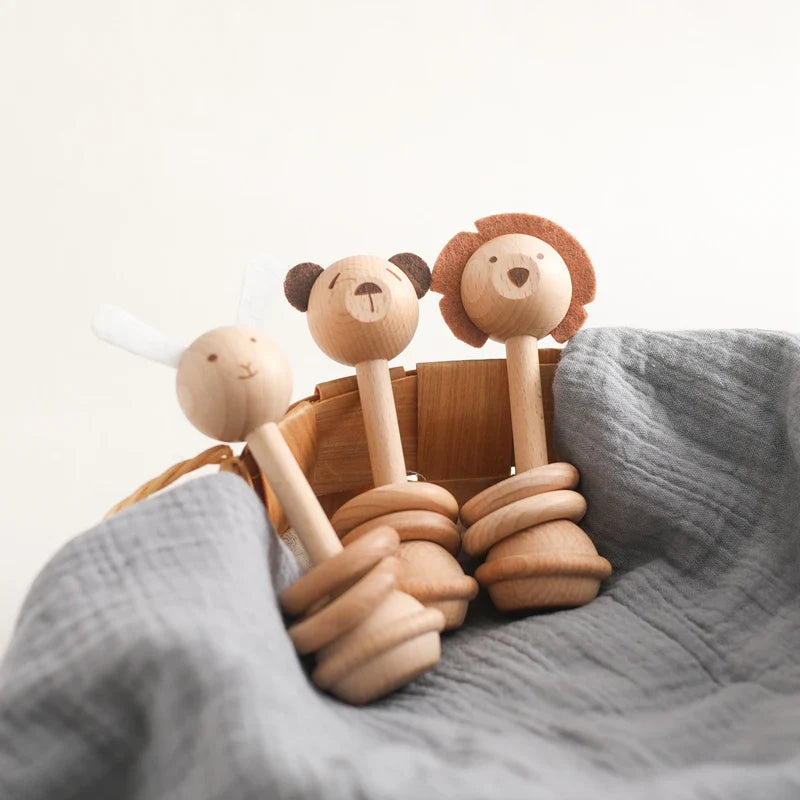 Introducing our high-quality Wooden Rattle Toy, perfect for infants aged 0-12 months. Crafted with care and precision, this adorable cartoon-shaped toy is designed to stimulate your baby's senses and provide hours of entertainment.