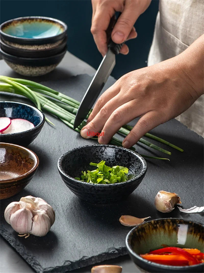 Axya Ceramic Plate Round Disc Sauce Bottle Soy Sauce Tray Condimemt Bottle