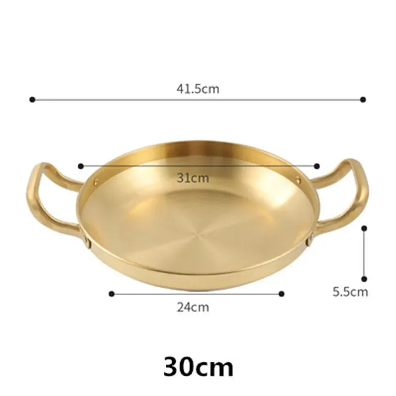 Introducing the Axya Golden Seafood Rice Pan with Handle, a premium addition to your kitchen cookware collection. Crafted from high-quality STAINLESS STEEL, this pan offers durability and reliability for all your cooking needs.