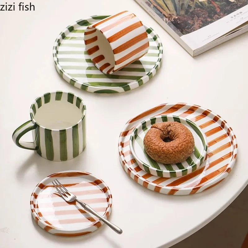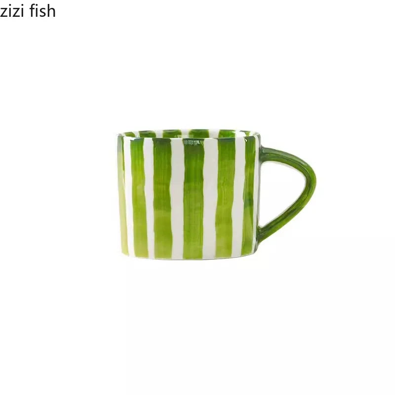 Indulge in the luxury of our Retro Hand Painted Ceramic Striped Mug, a perfect addition to your kitchen collection. Crafted from high-quality porcelain, this stylish beverage mug exudes modern elegance with its sleek handgrip design.