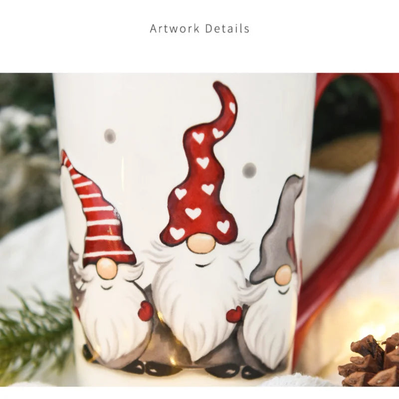 Axyaa Cartoon Elk Embossed Ceramic Christmas Mug, 550ml Large Capacity Drinking Cup