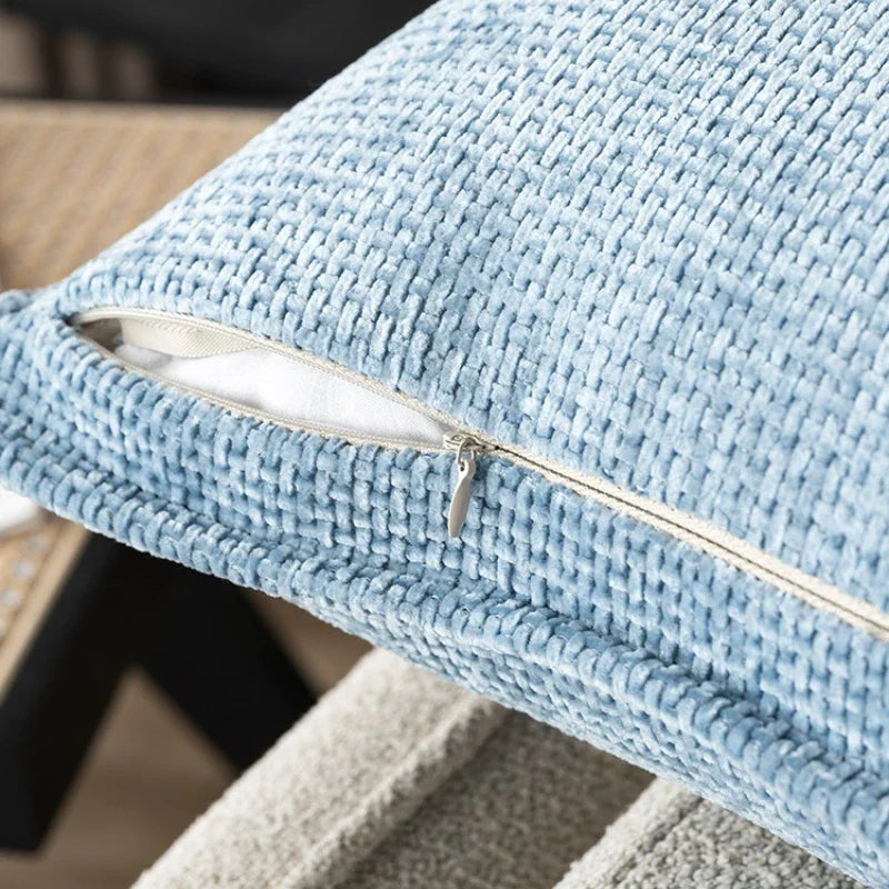 Enhance your home decor with our Axyaa Chenille Cushion Cover in Blue Grey, a seamless blend of style and comfort.