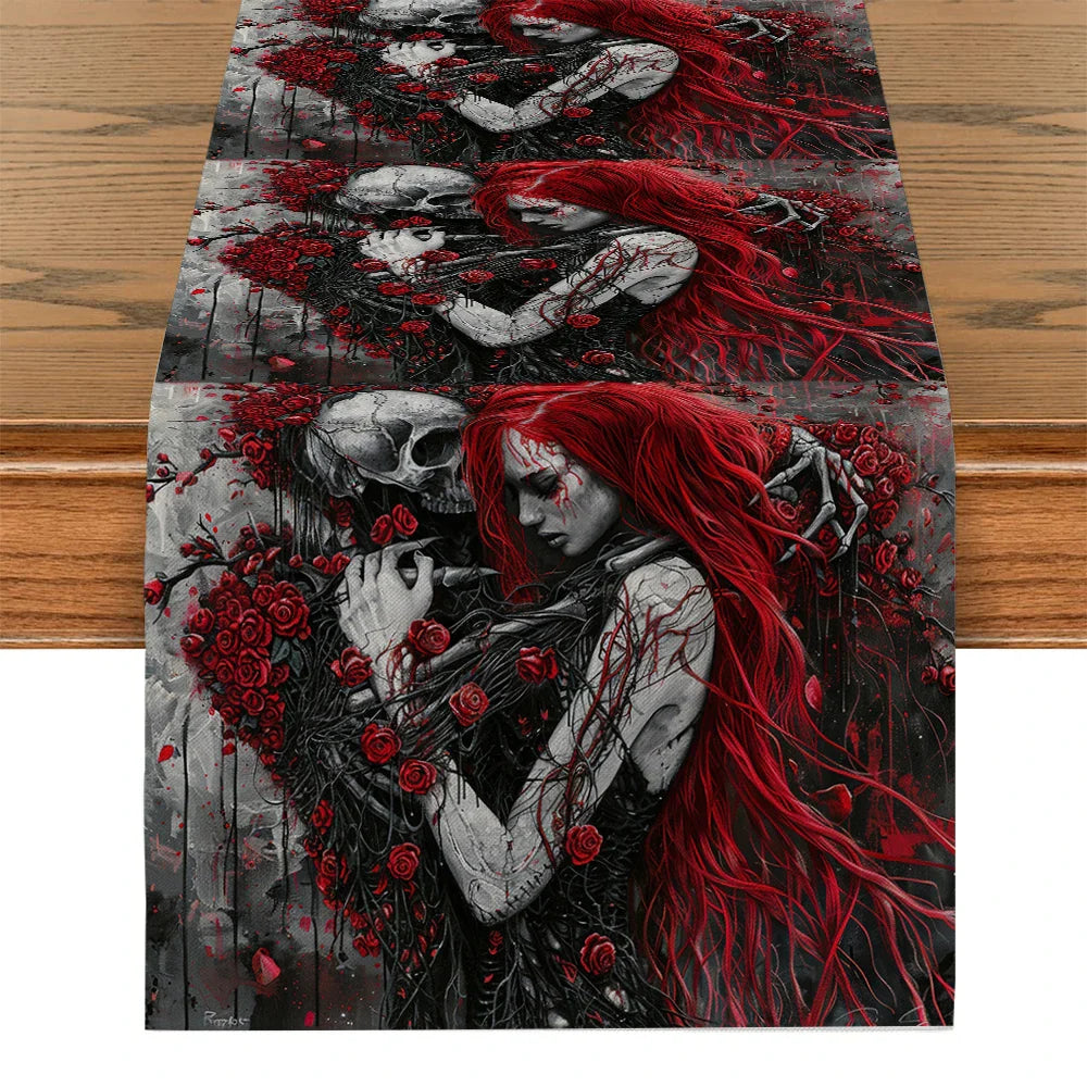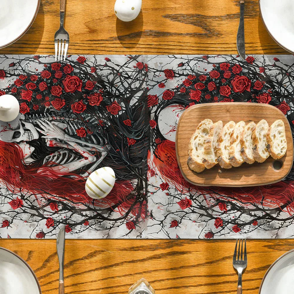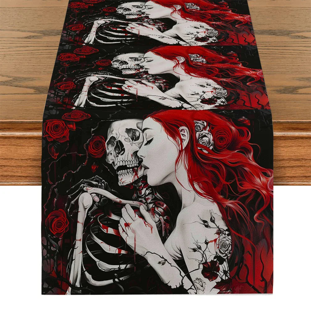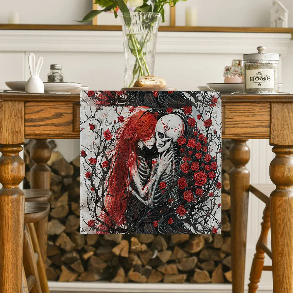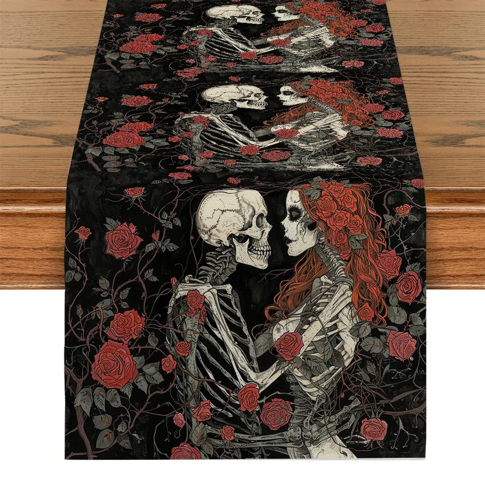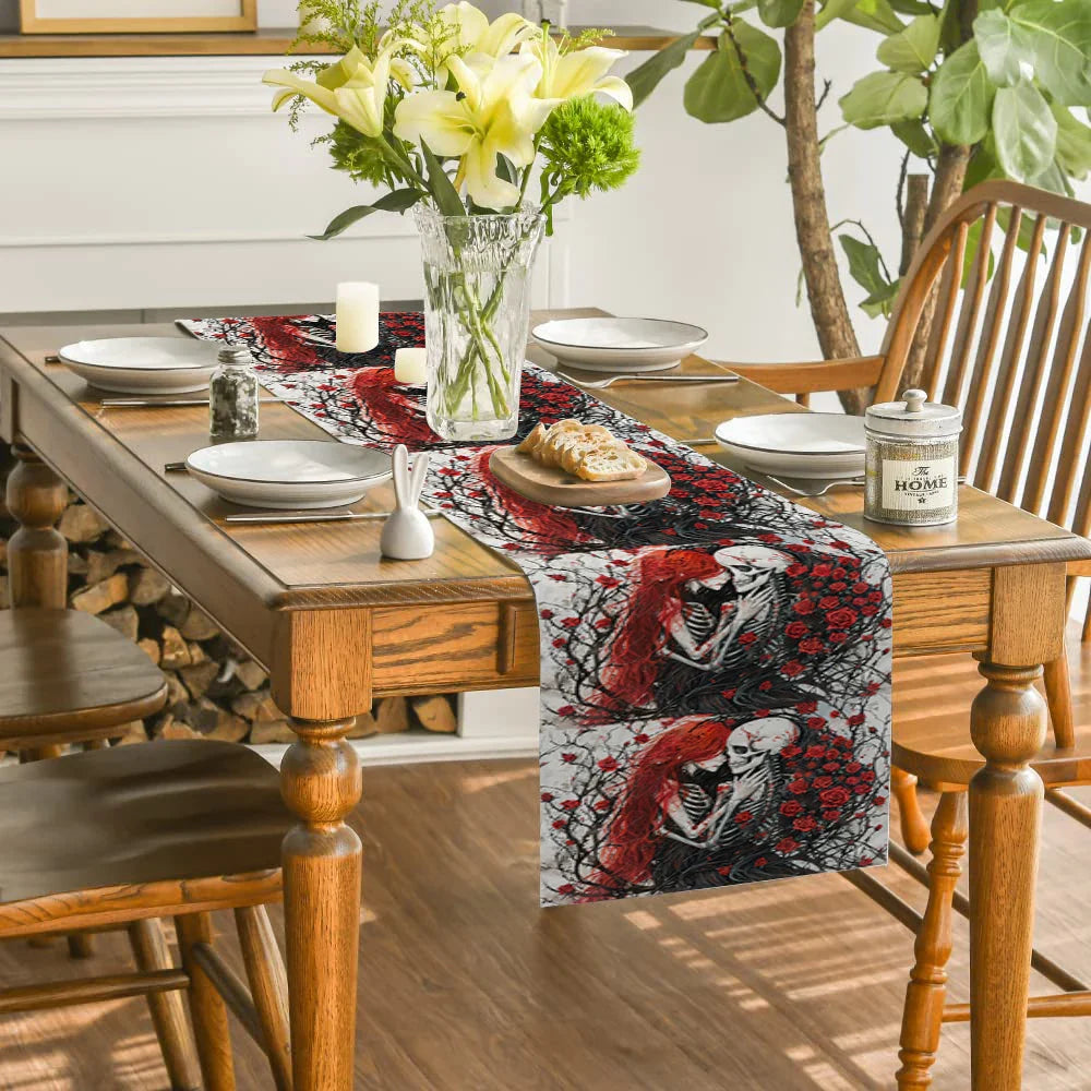 Add a touch of Halloween flair to your home with our Axyaa Halloween Skull Table Runner. Whether you're setting the scene for a spooky soiree or simply adding a festive touch to your dining table, this table runner is sure to delight both you and your guests.