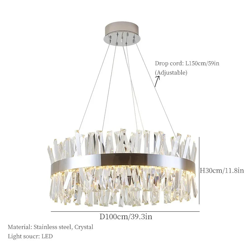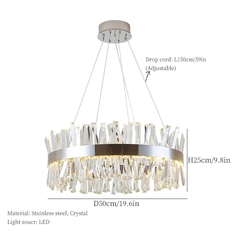 Elevate your space with the luxurious Axyaa Nordic Crystal Ceiling Chandelier LED Pendant Light. This exquisite lighting fixture is a perfect blend of modern style and functionality, adding a touch of elegance to any room it adorns.