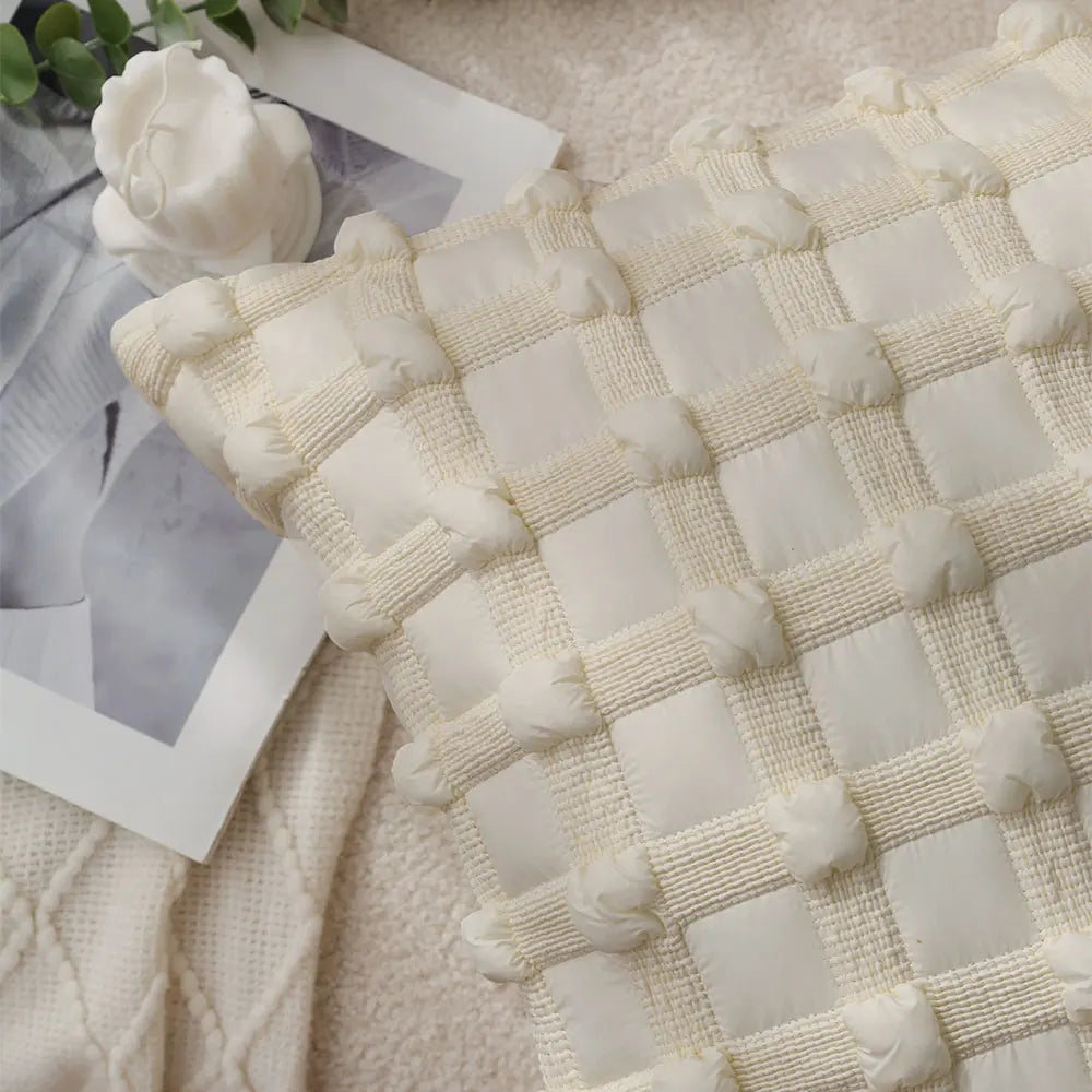 Get ready to elevate the look of your bed, chair, car, or any seating area with this modern and simple design. The tatting weaving technique adds a touch of elegance, while the plain dyed plaid pattern offers a versatile and sophisticated aesthetic.