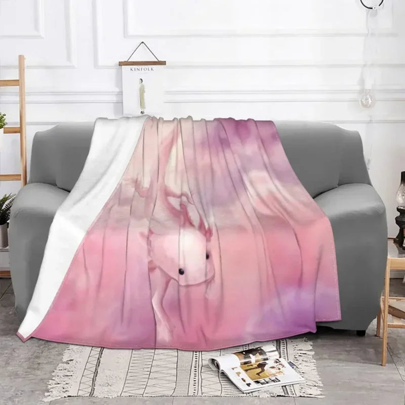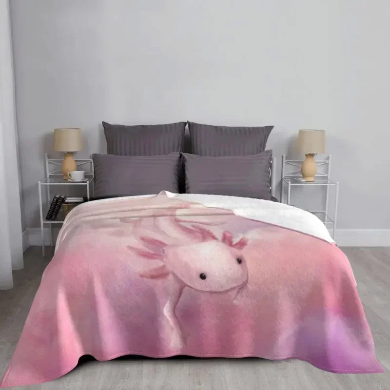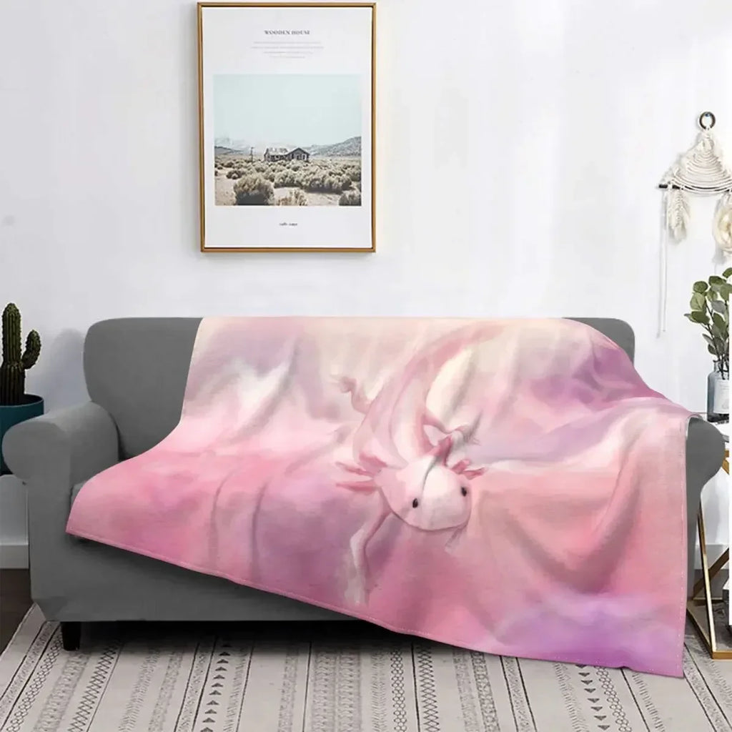 Whether you're snuggled up on the couch on a chilly evening or enjoying a picnic in the park on a sunny day, our Axyaa Pink Axolotl Fleece Blanket is the perfect companion. Machine washable for easy care, this high-quality blanket is sure to become a staple in your home.