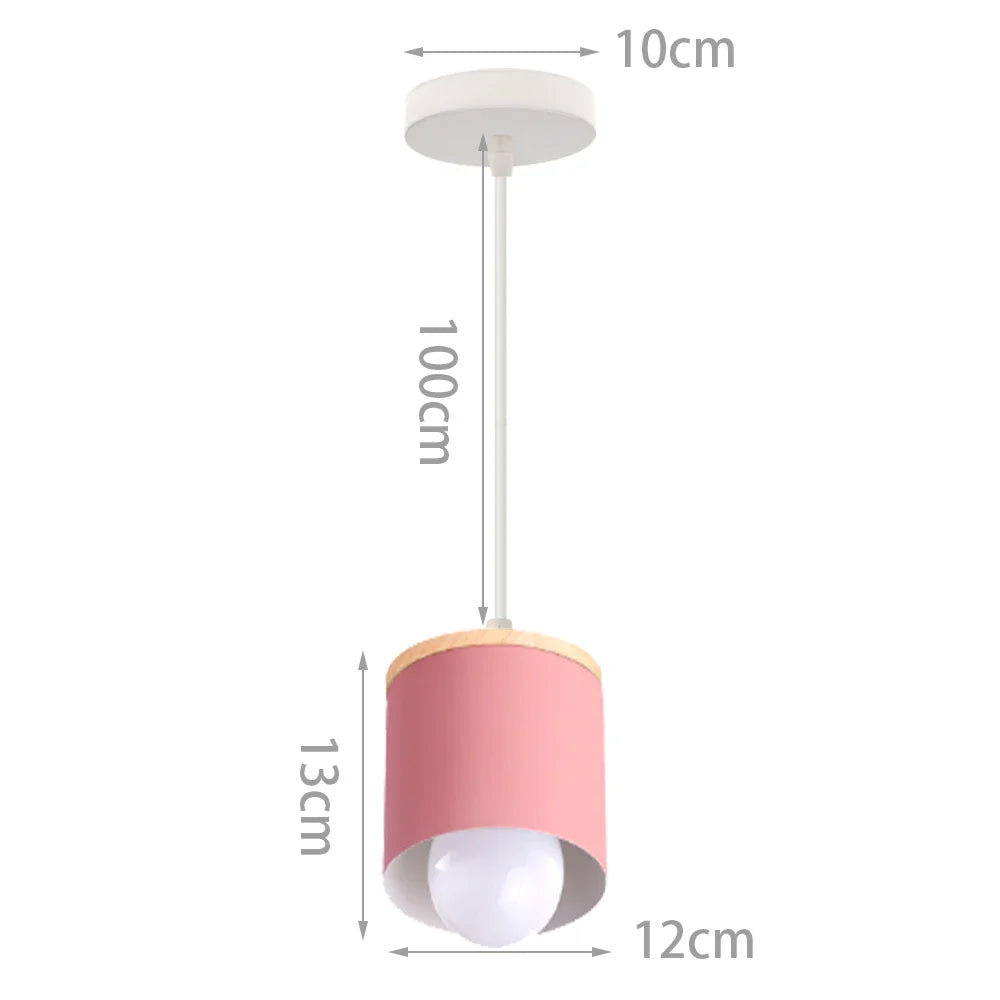 Axyaa Pink Wood Pendant Light: Nordic Modern E27 Shade for Home Decor Lighting
