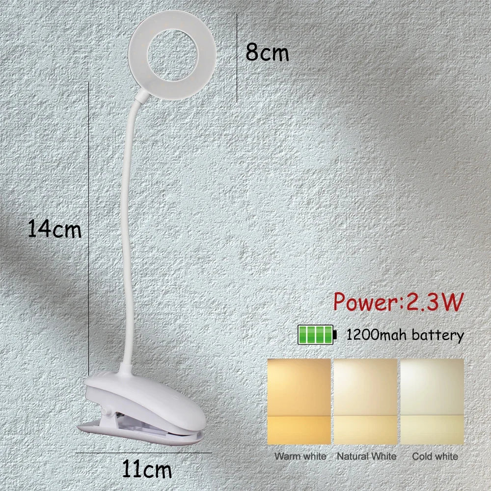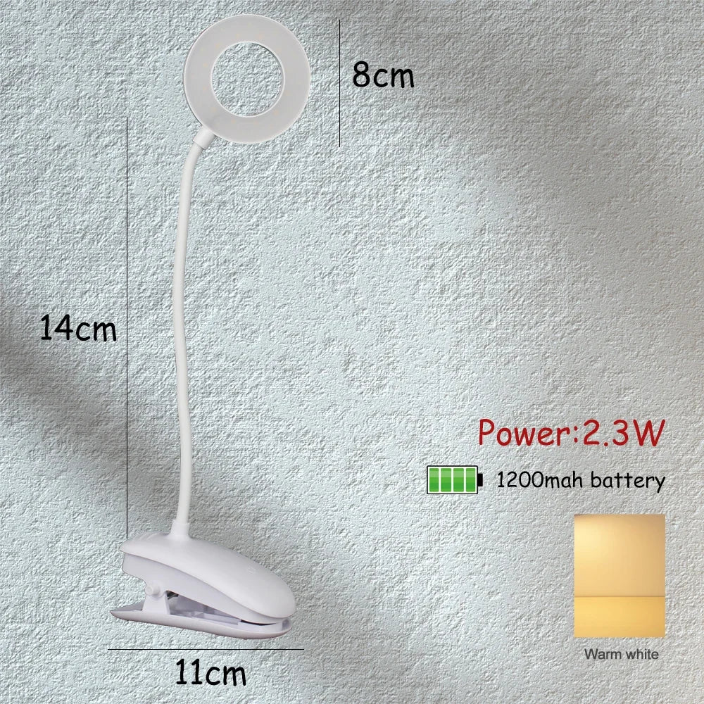 Axyaa Rechargeable Clip-On Table Lamp LED Night Light for Reading