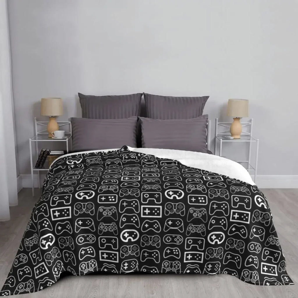 Axyaa White & Black Gaming Controllers Variant Throw Blanket