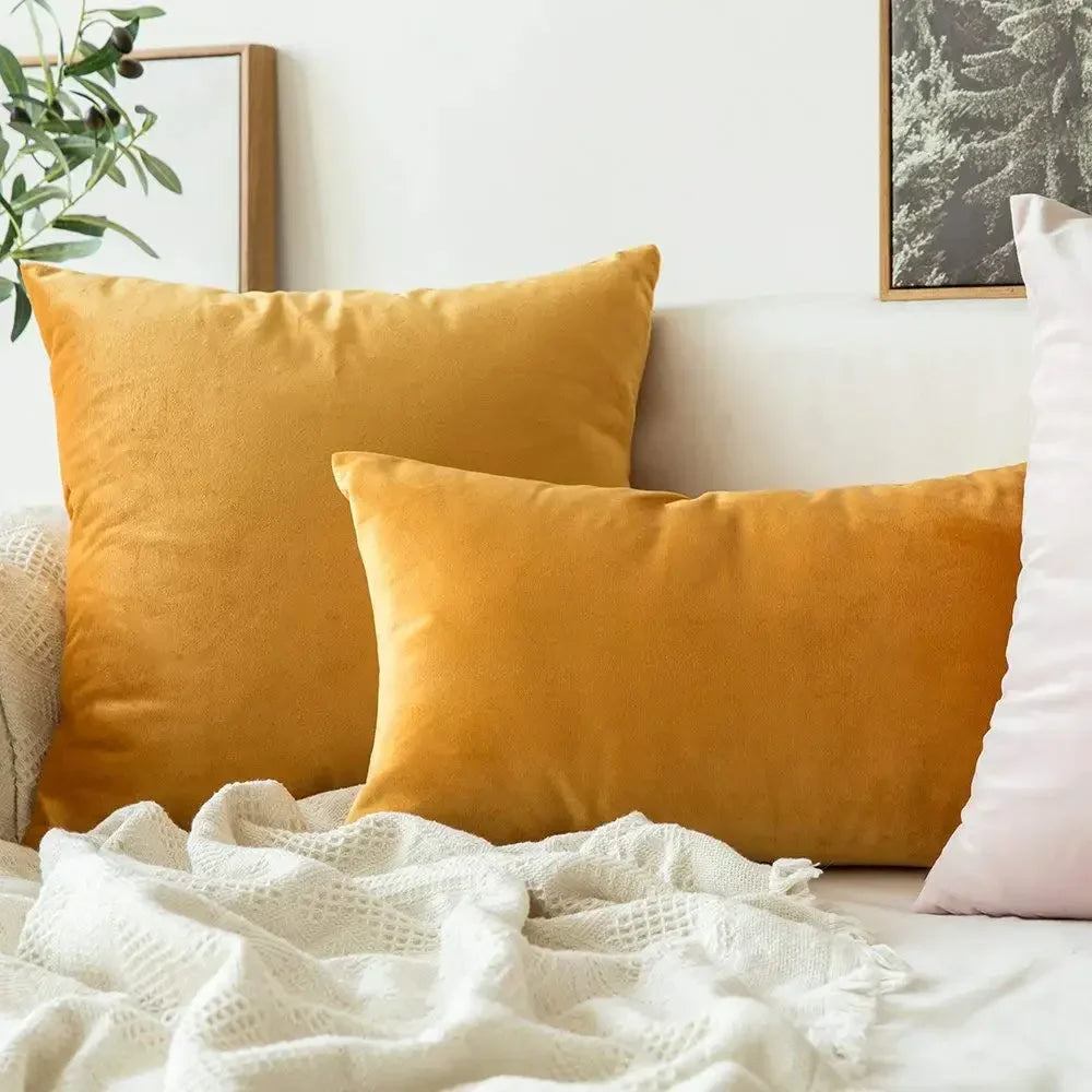 Enhance your seating area with the Axyaa Yellow Series Velvet Cushion Cover Set, a perfect choice for adding a touch of sophistication to your home.